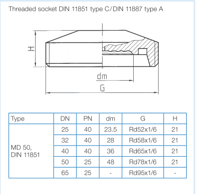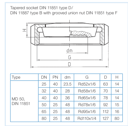 MD 50: DIN 11851/11887 DN 25 đến DN 65
